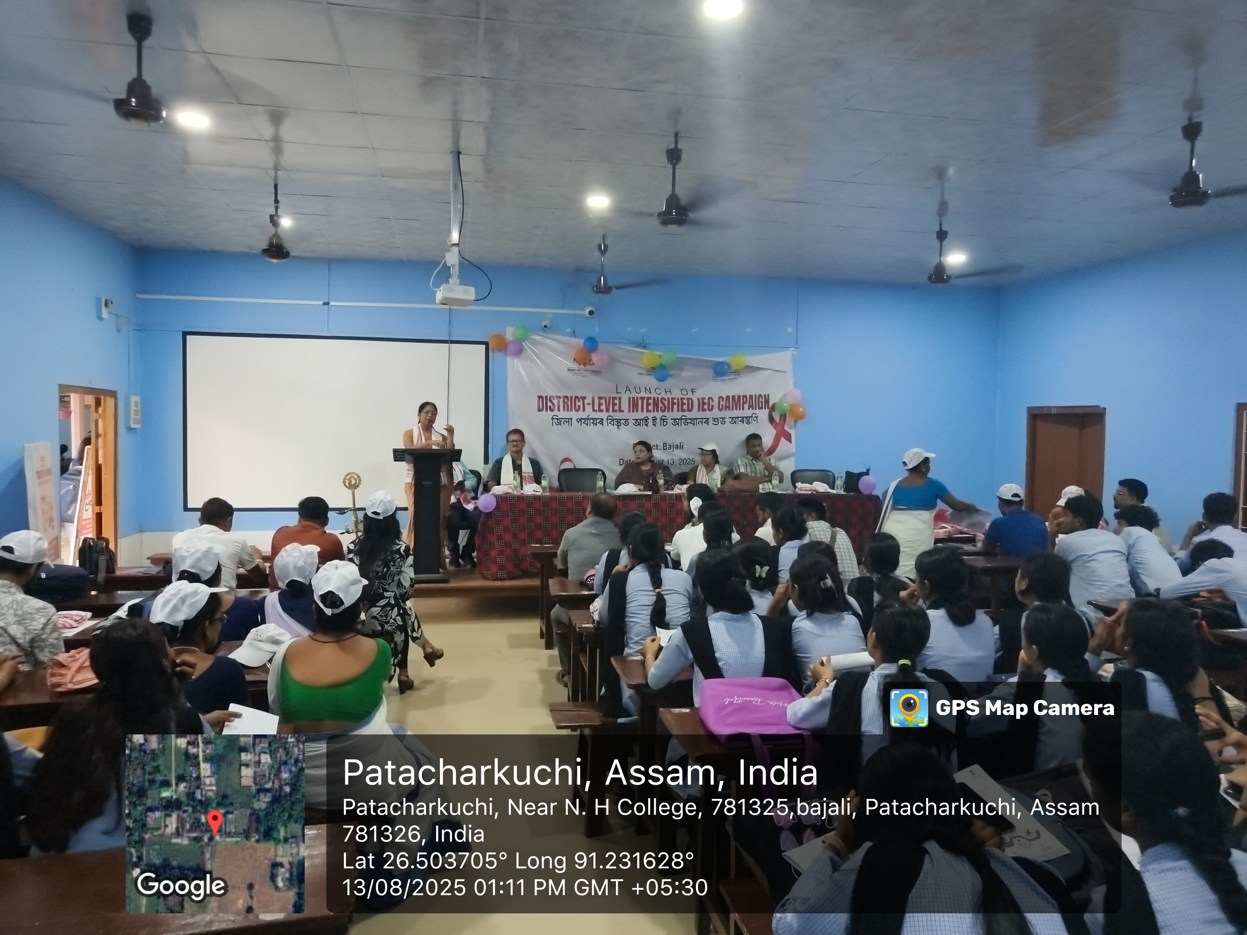 District-Level HIV/AIDS Awareness Campaign Launched at Nirmal Haloi College | The District Health Society, Bajali, in collaboration with Nirmal Haloi College, Patacharkuchi, successfully launched the 60-Day Intensified Campaign to raise awareness on HIV/AIDS prevention and education. The event was graced by Smt. Urmi Medhi (ADC, Bajali), Dr. Dipti Choudhury (CM&HO, Bajali), Shri Jyoti Kumar Das (DSWO, Bajali), along with Dr. Kaushik Kr. Deka (Principal), Mr. Kishore Kr. Sarma (Vice Principal), Mr. Upakul Patowary (Convenor, Red Ribbon Club), and Dr. Smita Deka (Member, Red Ribbon Club). Health department officials conducted interactive sessions, addressed myths, and promoted responsible behaviour, voluntary testing, and counselling. Students actively participated, reflecting strong youth engagement. The programme concluded with a vote of thanks, appreciating the collective efforts of dignitaries, faculty, health officers, and students in making the campaign launch a resounding success. | 2025-08-13 | View File |